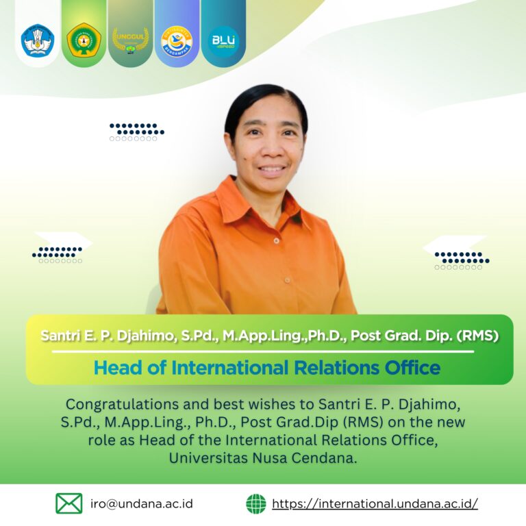 “Hello! Thank you for visiting our website. We are International Relations Office (IRO) UNDANA that is in charge of coordinating and facilitating international matters. Initiating and preparing MoUs and MoAs, assisting international students, arranging exchange lecturers, providing assistance for Undana students and lecturers to go global are some of our responsibilities apart from many others. We conduct a summer course, international webinars, VDMI awardees selection and International Education Fair annually. Please also visit our office in Rectorate Building 1rd floor, UNDANA Campus at Penfui and our social media at our Instagram @iro_undana and Facebook page Iro Undana. We are here to help and assist those in need.”
